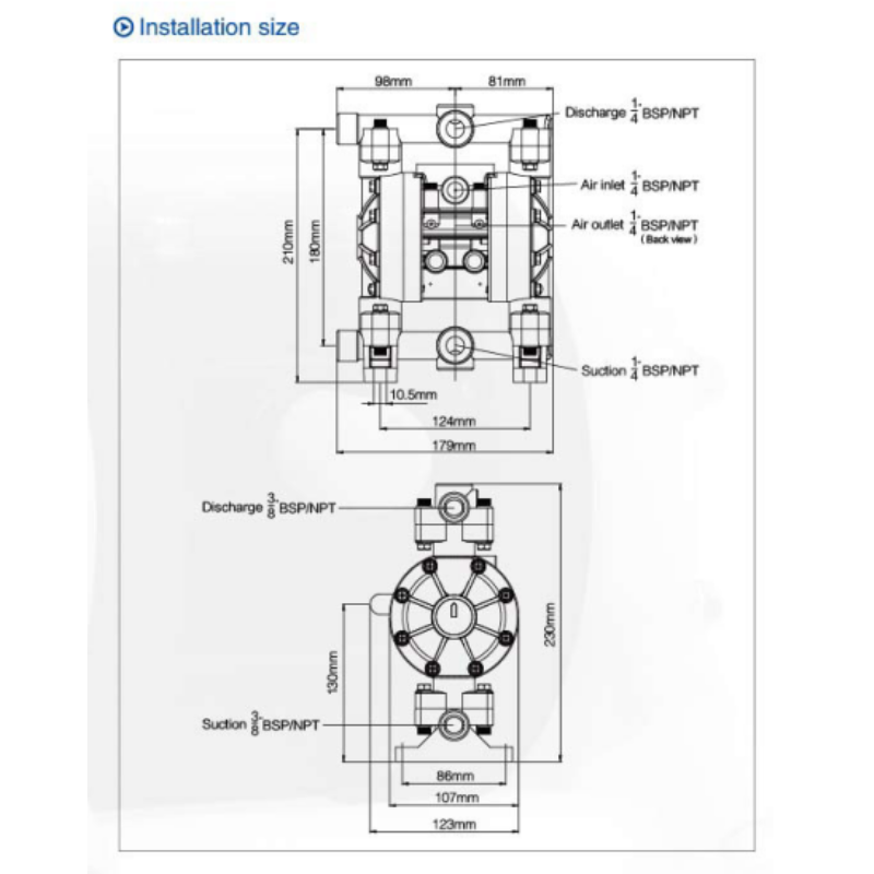 • ขนาดพอร์ตดูด-จ่าย 3/8 นิ้ว BSPT เหมาะกับปั๊มไซซ์ 1/4 นิ้ว