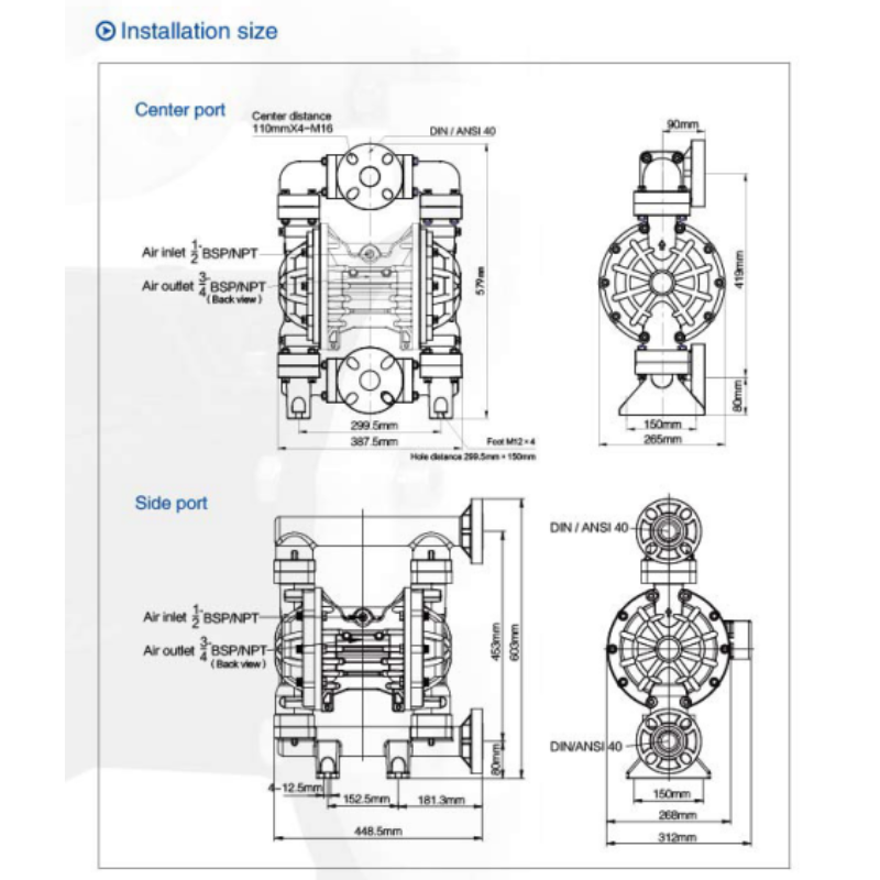 - ประเภทสินค้า: ปั๊มเคมีไดอะแฟรมขับด้วยลม (AODD Pump)