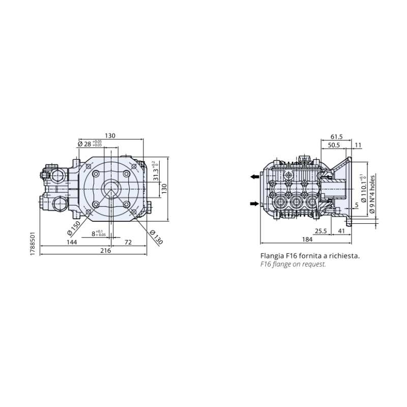 ANNOVI รุ่น XM 13.17C DX + F16 เป็นปั๊มแรงดันสูงแบบลูกสูบที่ออกแบบมาสำหรับเครื่องฉีดน้ำแรงดันสูงในงานอุตสาหกรรมและงานทำความสะอาด ตัวปั๊มออกแบบเป็นรุ่นเพลากลวง (C Version) สำหรับประกอบเข้ากับมอเตอร์ไฟฟ้าโดยตรงผ่านหน้าแปลน F16 เพื่อให้ติดตั้งได้สะดวกและใช้งานได้อย่างมั่นคง
